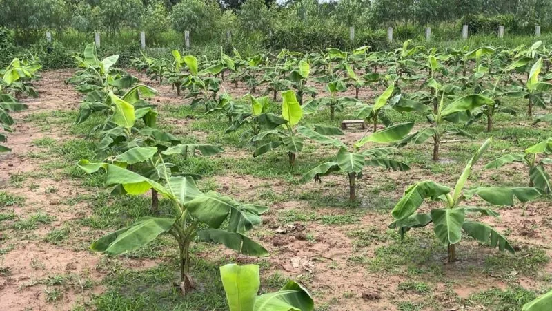เมื่อเวลา 13.00 น. วันที่ 26 พ.ค. 2568 ผู้สื่อข่าวลงพื้นที่ บ้านนาเพียง ต.สำราญ จ.ขอนแก่น ซึ่งเป็นหมู่บ้านปลูกกล้วยหอมทองรายใหญ่ ของ จ.ขอนแก่น หลังเริ่มได้รับผลกระทบจากฝนที่ตกลงมาอย่างต่อเนื่องส่งผลให้น้ำแฉะทำให้รากเริ่มมีเชื้อราและเน่าเปื่อย