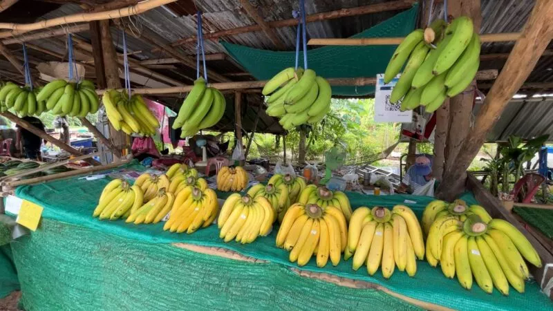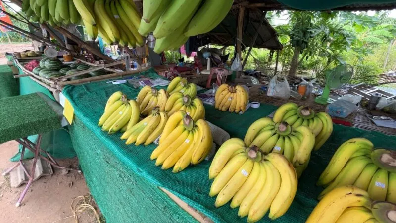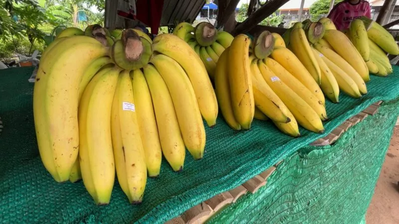 ” ช่วงนี้กล้วยหอมทองกำลังเป็นราคาแต่ดันมาเจอฝนอาจจะต้องมีการฉีดยากันเชื้อราบ้างในระยะนี้ ถ้าไม่ฉีดกันไว้รากจะเน่าและเปื่อยตายในที่สุด ทำให้มีต้นทุนเพิ่มขึ้นแต่ก็เล็กน้อยประกอบกับ ปีนี้กล้วยราคาดีกว่าปีที่ผ่านมา ซึ่งที่สวนปลูกเองขายเองเริ่มต้นขายหวีละ 70-140 บาทแล้วแต่ขนาดของหวี โดยที่ ปีนี้ลงทุนปลูกกล้วยขาย จึงถือว่าคุ้มค่าที่ลงทุนไป”