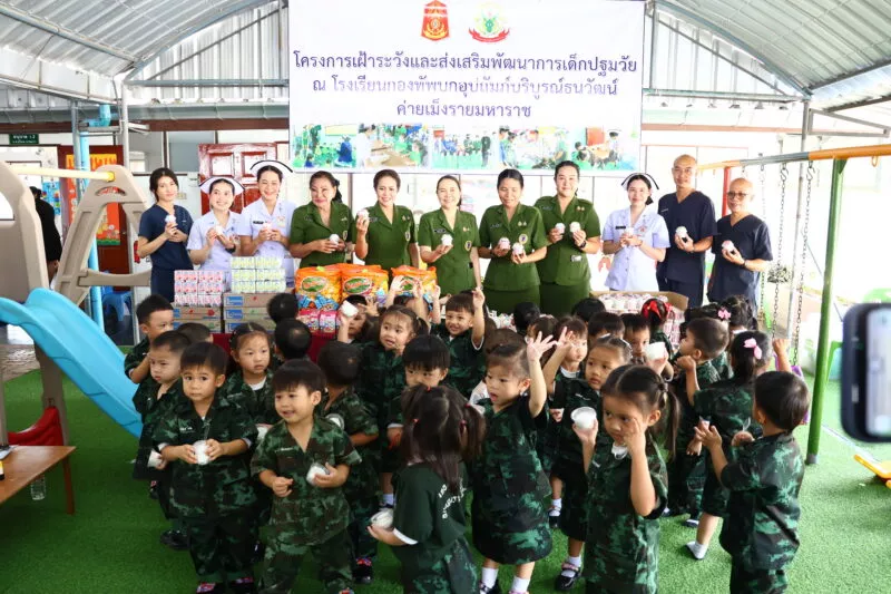 เมื่อวันที่ 12 มิ.ย. 68 เวลา 08.00-12.00 น. รพ.ค่ายเม็งรายมหาราช โดยทีมส่งเสริมสุขภาพ พร้อมด้วยประธานสมาคมแม่บ้านทหารบก สาขา มณฑลทหารบกที่ 37 ได้ดำเนินการ โครงการเฝ้าระวังและส่งเสริมพัฒนาการให้แก่เด็กปฐมวัย พร้อมทั้งตรวจสุขภาพช่องปากและฟัน ณ โรงเรียนกองทัพบกอุปถัมภ์บริบูรณ์ธนวัฒน์ ค่ายเม็งรายมหาราช จำนวน 387 คน ผลการปฏิบัติเป็นไปด้วยความเรียบร้อย