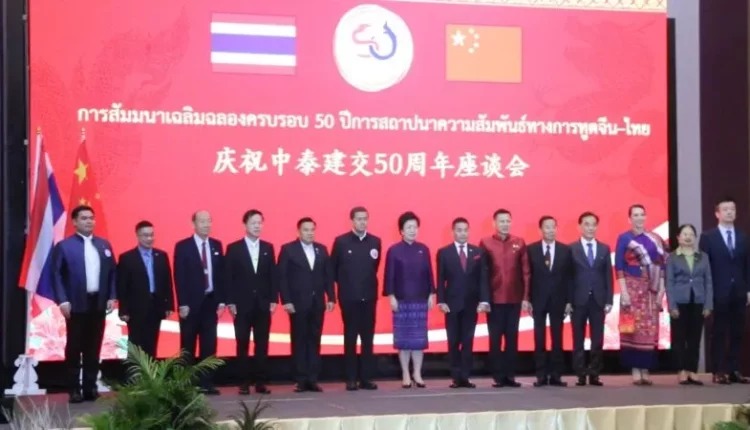 ผู้สื่อข่าวรายงานว่าที่โรงแรมอวานี ขอนแก่น กงสุลใหญ่สาธารณรัฐประชาชนจีน ประจำประเทศไทย ณ จ.ขอนแก่น ได้กำหนดจัดงานสัมมนาเฉลิมฉลองครบรอบ 50 ปีการสถาปนาความสัมพันธ์ทางการทูตจีน–ไทยพร้อมทั้งย้อนรำลึกถึงประวัติศาสตร์แห่งมิตรภาพระหว่าง 2 ประเทศ และร่วมกันแลกเปลี่ยนวิสัยทัศน์ต่อการพัฒนาในอนาคต โดยมีนางหลิว หง เหมย กงสุลใหญ่สาธารณรัฐประชาชนจีน ประจำประเทศไทย,นายกร ทัพพะรังสี อดีตรองนายกรัฐมนตรีและนายกสมาคมมิตรภาพไทย-จีน,นายไกรสร กองฉลาด ผวจ.ขอนแก่น,นายจักรกฤษณ์ ศิริพาณิชย์ ประธานหอการค้าขอนแก่น,นายทวีสันต์ วิชัยวงษ์ ประธานสภาอุตสาหกรรม จ.ขอนแก่น,นายสนั่น พงษ์อักษร ผวจ.กาฬสินธุ์,นายวรญาณ บุญณราช ผวจ.มุกดาหาร,พล.ต.กิตติพงษ์ เนื่องชมภู ผบ.มทบ.23 ,พล.ต.ต.พิษณุ อุณหเสรี รอง ผบช.ภ.4,พล.ต.ต.พงษ์สยาม มีขันทอง รอง ผบช.ทท.,นายศิริวัฒน์ พินิจพาณิชย์ รอง ผวจ.ขอนแก่น พร้อมด้วยหัวหน้าส่วนราชการ ผู้นำองค์กรจีน รวมทั้งผู้แทนหน่วยงานภาครัฐและภาคเอกชนในพื้นที่ 20 จังหวัดภาคอีสานเข้าร่วมงานอย่างพร้อมเพรียง