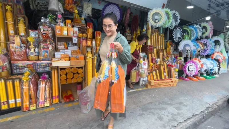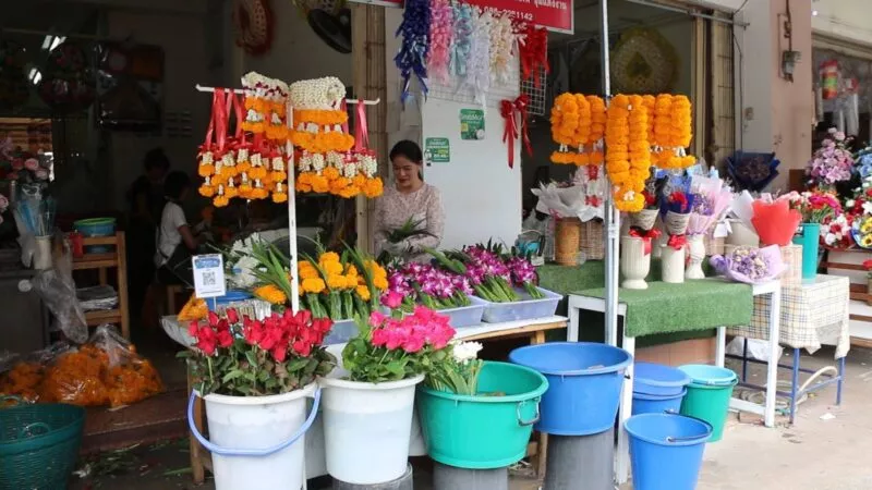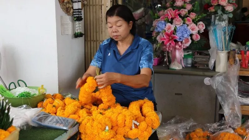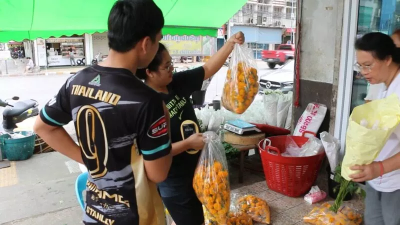 น.ส.พรรณา ข้อยุ่น อายุ 33 ปี เจ้าของร้านดอกรักขอนแก่น กล่าวว่า ปีนี้ไม่ได้เตรียมดอกไม้ไว้เยอะมากเพราะว่าช่วงนี้เงียบแต่เพิ่มจากวันพระปกตินิดหน่อย สำหรับดอกดาวเรืองเพิ่มมากกว่าปกติเพราะคนใช้เยอะ แต่ปีนี้ดอกดาวเรืองหายากเพราะฝนตกทำให้ดอกช้ำดอกเน่าและทำให้ราคาดอกดาวเรืองสูงขึ้นปกติช่วงเทศกาลจะประมาณดอกละ 2 บาท แต่ช่วงนี้ตกดอกละ 3-4 บาท ชาวสวนขึ้นราคาเพราะดาวเรืองทำยากช่วงหน้าฝนและดอกไม้ที่ขึ้นราคาอีกหนึ่งอย่างคือดอกกล้วยไม้ขึ้นราคามาเป็นเดือนแล้วจากเดิม กก.ละ 200 บาท ตอนนี้ปรับขึ้นมาเป็น กก.ละ 300 บาท