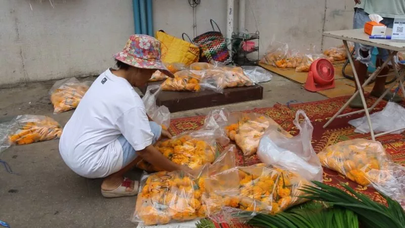 ดอกดาวเรืองปีนี้ราคาแพงรับวันพระใหญ่ ขณะที่กล้วยไม้ปรับขึ้น กก.ละ 300 บาท ด้านสังฆทานและเทียนพรรษาปีนี้เงียบเหงา