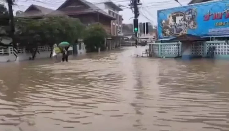 พะเยาอ่วม! น้ำท่วมเชียงคำ ถนนหน้า รพ.จม รถเล็กผ่านไม่ได้ เร่งวางกระสอบทรายสกัดน้ำ