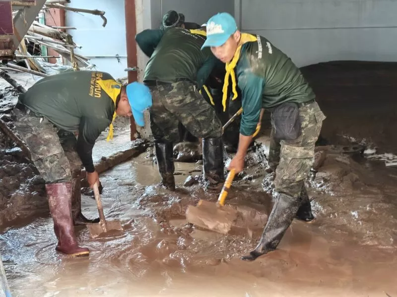 วันที่ 30 ก.ค. 68 พลตรี จักรวีร์ เสนีย์วรยุทธ์ ผู้อำนวยการศูนย์อำนวยการจิตอาสาพระราชทาน มณฑลทหารบกที่ 37/ผู้บัญชาการศูนย์บัญชาการบรรเทาสาธารณภัย มณฑลทหารบกที่ 37 สั่งจัดชุดปฏิบัติการบรรเทาสาธารณภัย ประกอบด้วย กองร้อยมณฑลทหารบกที่ 37, กองพันทหารราบที่ 3 กรมทหารราบที่ 17 ในพระองค์ฯ, ชุดเสนารักษ์เดินเท้า จาก รพ.ค่ายเม็งรายมหาราช, กองร้อยทหารสารวัตร มณฑลทหารบกที่ 37 และชุดช่างแผนกยุทธโยธา มณฑลทหารบกที่ 37 เข้าปฏิบัติภารกิจฟื้นฟูพื้นที่ประสบอุทกภัยอย่างสุดเต็มกำลัง