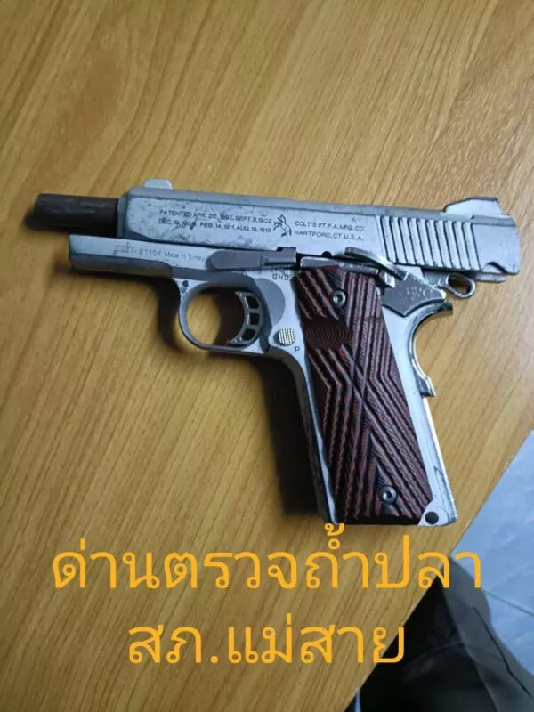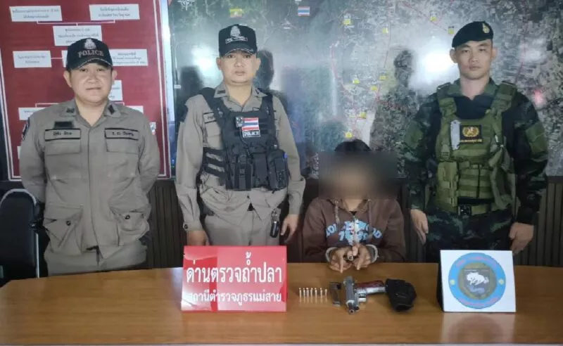 เวลาประมาณ 01.30 น.  วันที่ 1 สิงหาคม 2568 เจ้าหน้าที่ตำรวจ สภ.แม่สาย ประจำด่านตรวจถ้ำปลา ภายใต้การอำนวยการของ พ.ต.อ.เทคนิค จันสี ผกก.สภ.แม่สาย  ได้จับกุมตัว นายยุทธภูมิ สงวนนามสกุล อายุ 18 ปี ชาวอำเภอแม่สาย พร้อมอาวุธปืนขนาด .380 จำนวน 1 กระบอก พร้อมกระสุน จำนวน 13 นัด พร้อมตั้ง  3 ข้อหา  มีอาวุธปืนโดยไม่ได้รับอนุญาต, พกพาอาวุธปืนไปในที่สาธารณะ และ พกพาอาวุธปืนโดยเปิดเผยหรือไม่มีเหตุอันควร