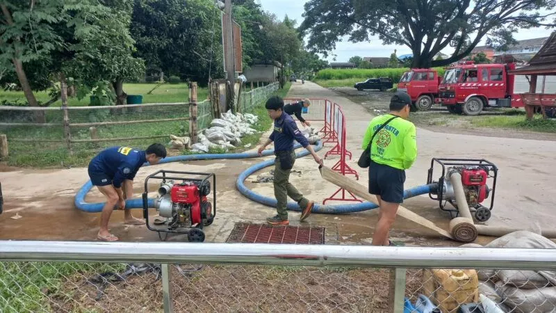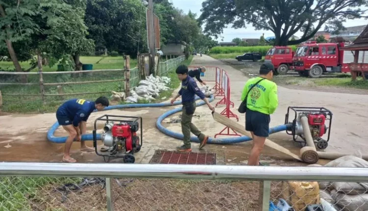 วันพุธที่ 30 กรกฎาคม 2568 เทศบาลนครเชียงรายโดย นายวันชัย จงสุทธานามณี นายกเทศมนตรีนครเชียงรายมอบหมายให้ นายประพันธ์ ช่างแก้ว หัวหน้าฝ่ายปกครอง และเจ้าหน้าที่งานป้องกันและบรรเทาสาธารณภัย เทศบาลนครเชียงราย ลงพื้นที่ดำเนินการติดตั้งและเดินเครื่องสูบน้ำอย่างต่อเนื่อง เพื่อเร่งระบายน้ำที่ไหลย้อนเข้าสู่พื้นที่ชุมชนป่าแดงจากแม่น้ำกกที่มีระดับสูงขึ้น