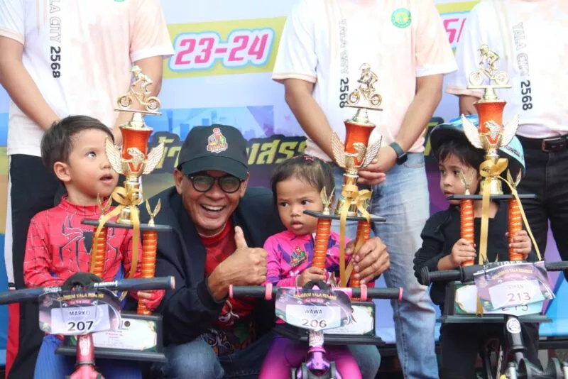 วันที่ 23 สค.68 ห้างโคลีเซี่ยม ยะลา ปิดถนนบริเวณด้านข้างห้างฯ เปิดลานแข่งขัน จักรยานขาไถ Balance Bike รายการ ” Coliseum Yala Runbike Fun Fet 2025″โดยมีนายนฤมินทร์ อามิน รองนายกเทศมนตรีนครยะลา นายตูแวแซะ นาเปาะ ประธานชมรมจักรยานขาไถจังหวัดยะลา ผู้บริหารห้างโคลีเซี่ยมยะลา และส่วนที่เกี่ยวข้อง เข้าร่วม
