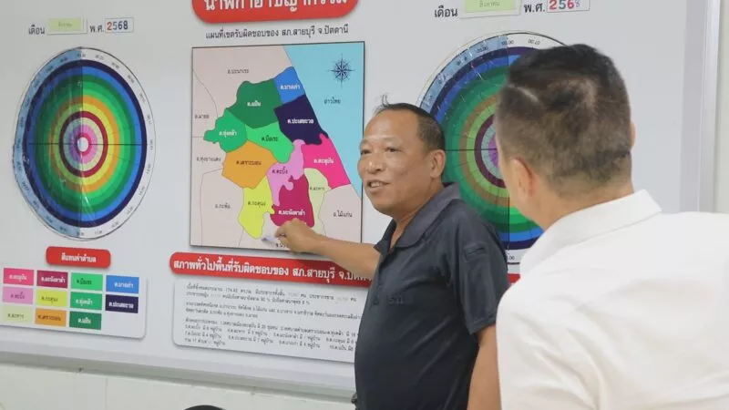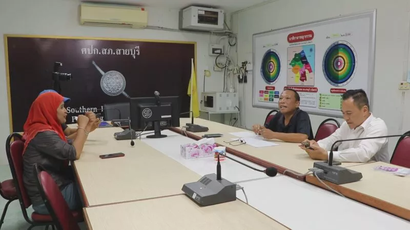 ที่สถานีตำรวจภูธรสายบุรี อ.สายบุรี จ.ปัตตานี นายอิบรอเหม เบ็ญนา หัวหน้าสำนักงานเลขานุการ ผอ.กสม. ศอ.บต. ได้เดินทางเข้าพบ พ.ต.ท.ศิริชัย สุขสารัญ รอง ผกก.สส.สภ.สายบุรี จ.ปัตตานี เพื่อแลกเปลี่ยนความคิดเห็น ในการแก้ปัญหายาเสพติดในพื้นที่ พร้อมทั้งได้ชี้แจ้งทำความเข้าใจเกี่ยวกับ นโยบาย 120 วัน วาระพืชกระท่อม ซึ่งเป็นนโยบายที่สำคัญในการขับเคลื่อนการแก้ปัญหาพืชใบกระท่อมที่ยังคงมีการแพร่ระบาดในหมู่เยาวชนในพื้นที่จังหวัดชายแดนภาคใต้ โดยหัวใจสำคัญในการขับเคลื่อนโยบายดังกล่าว ก็คือ การมีส่วนร่วมของทุกภาคส่วน ไม่ว่าจะเป็น เจ้าหน้าที่ 3 ฝ่าย ทั้ง ทหาร ตำรวจ ฝ่ายปกครอง ผู้นำท้องที่ ทั้งกำนัน ผู้ใหญ่บ้าน ผู้นำศาสนา และที่สำคัญ คือการร่วมมือร่วมใจของภาคประชาชนในพื้นที่ ที่แสดงออกถึงการปฏิเสธไม่เอาพืชใบกระท่อม ซึ่งตอลดในห่วง 2 เดือนที่ผ่านมาของการขับเคลื่อนพบว่า ในหลายพื้นที่การแพร่ระบาดของใบกระท่อมลดลงเป็นอย่างมาก โดยเฉพาะ ร้านที่เคยจำหน่ายอยู่ตามเส้นทางสายหลัก ที่พบว่ามีอยู่จำนวนมากก่อนหน้านี้ ก็แถบจะไม่เห็นอีกแล้ว