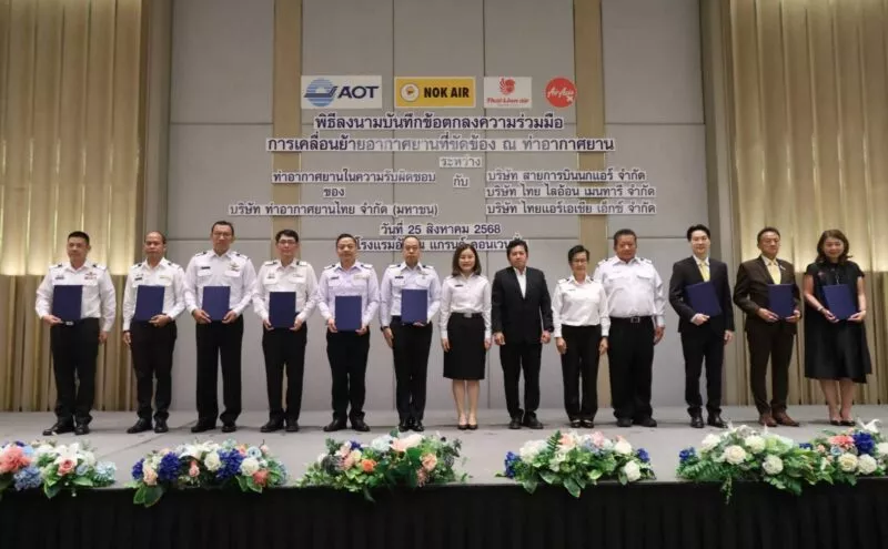 นางสาวปวีณา จริยฐิติพงศ์ รักษาการผู้อำนวยการใหญ่ บริษัท ท่าอากาศยานไทย จำกัด (มหาชน) (AOT) เป็นประธานในพิธีลงนามบันทึกข้อตกลงความร่วมมือการเคลื่อนย้ายอากาศยานที่ขัดข้องระหว่างท่าอากาศยานในความรับผิดชอบของ AOT กับ บริษัท สายการบินนกแอร์ จำกัด บริษัท ไทย ไลอ้อน เมนทารี จํากัด และ บริษัท ไทยแอร์เอเชีย เอ็กซ์ จํากัด เมื่อวันที่ 25 สิงหาคม 2568 โดยมีวัตถุประสงค์เพื่อบูรณาการความร่วมมือระหว่างผู้ดำเนินการเดินอากาศ และผู้ดำเนินการสนามบินในด้านการให้บริการโดยคำนึงถึงความปลอดภัยเป็นสำคัญ รองรับสถานการณ์ฉุกเฉินได้อย่างต่อเนื่องและมีประสิทธิภาพ ซึ่งจะนำไปสู่ปฏิบัติการตามแผนฉุกเฉิน ที่ได้รับการรับรองจากรัฐเพื่อให้เกิดความปลอดภัย และการช่วยเหลือกู้ภัยต่อผู้ประสบเหตุอย่างทันท่วงที ตลอดจนยกระดับขีดความสามารถการขนส่งทางอากาศที่ปลอดภัยตามมาตรฐานของสำนักงานการบินพลเรือนแห่งประเทศไทย (CAAT) และองค์การการบินพลเรือนระหว่างประเทศ (ICAO)