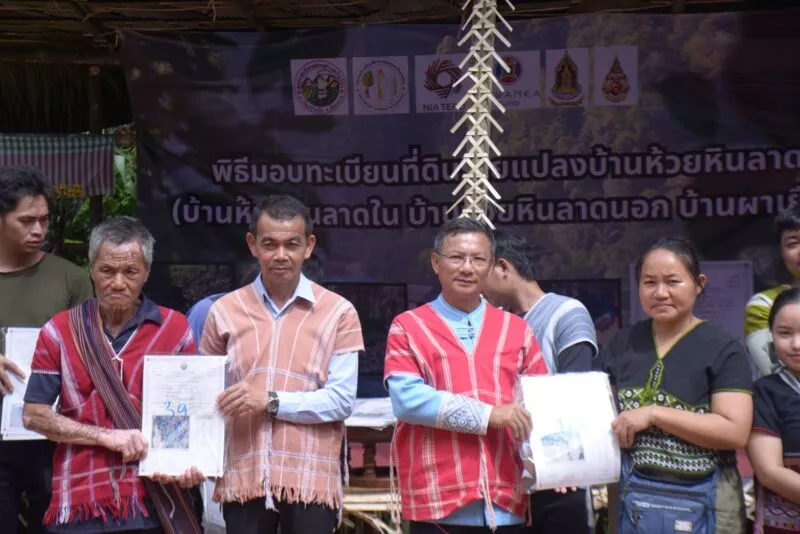 มอบโฉนดชุมชนรายแปลงให้ชาวบ้านห้วยหินลาดใน-หมู่บ้านร่วมกันกำหนดกติกาในที่ดินสิทธิส่วนรวม เผยทำทะเบียนประวัติป้องกันการบุกรุก-อบต.พร้อมออกข้อบัญญัติหนุน