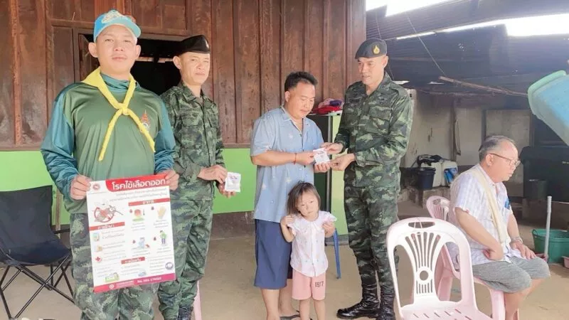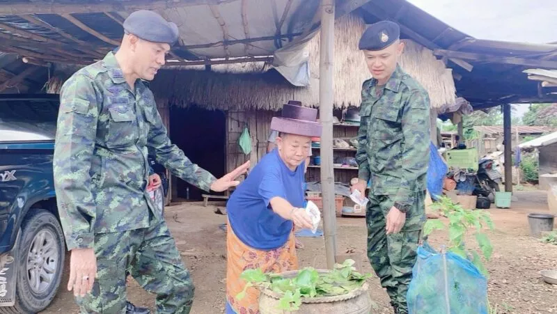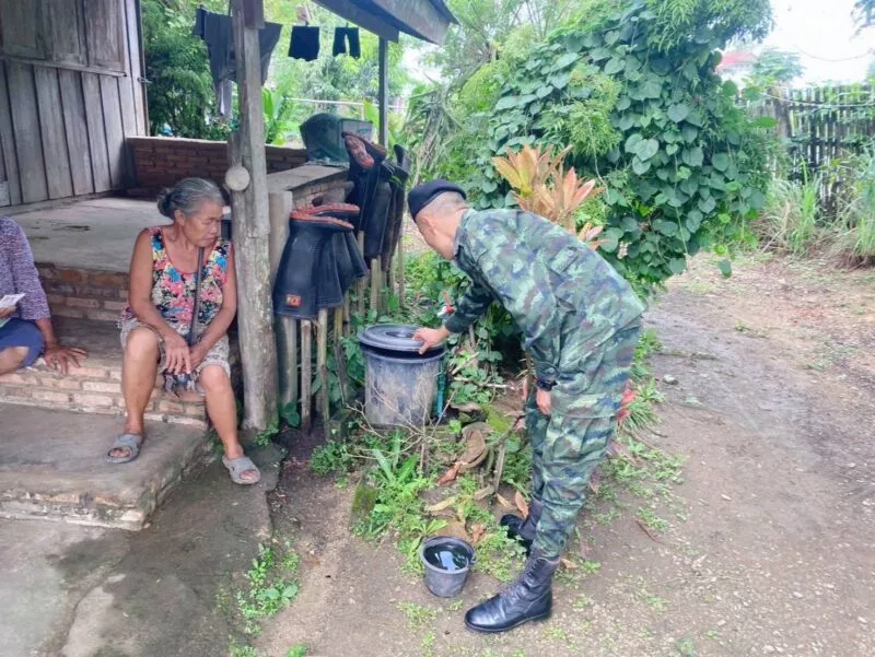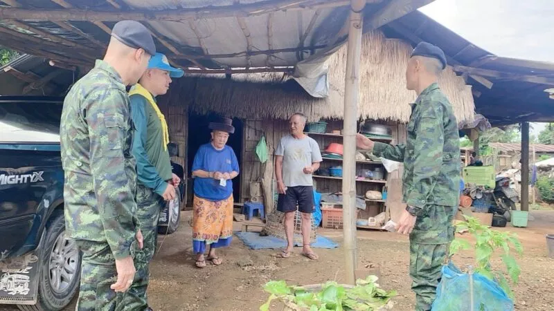 มณฑลทหารบกที่ 37 จัดกำลังพล “เราทำความ ดี ด้วยหัวใจ” นำโดย ร้อยตรี ณัฐพล บุญทับ หัวหน้าชุดประสานการคุ้มครองป้องกันชุมชน สถานีพัฒนาการเกษตรพื้นที่สูง ตามพระราชดำริ บ้านธารทอง พร้อมกำลังพล “เราทำความ ดี ด้วยหัวใจ” เพื่อแสดงออกถึงความจงรักภักดี และสำนึกในพระมหากรุณาธิคุณของพระบาทสมเด็จพระเจ้าอยู่หัว เข้าพบปะประชาชนซึ่งเป็นกลุ่มผู้สูงอายุ เพื่อสอบถามความเป็นอยู่ และเป็นการสร้างความสัมพันธ์อันดีระหว่างทหารกับประชาชน บ้านแม่เงิน หมู่ 6, บ้านไร่ หมู่ 7, และ บ้านธารทอง หมู่ 11 ซึ่งเป็นประชาชนกลุ่มผู้สูงอายุและกลุ่มเปราะบาง เพื่อสอบถามความเป็นอยู่ และเป็นการสร้างความสัมพันธ์อันดีระหว่างทหารกับประชาชน เนื่องจากห้วงนี้มีพายุ “คาจิกิ” เข้าในพื้นที่ประเทศไทยทำให้มีฝนตกหนักถึงหนักมากในบางพื้นที่ และเกิดพายุลมแรงทำให้เกิดฝนฟ้าคะนอง มีน้ำท่วมขัง ซึ่งอาจจะทำให้เกิดความเสียหายแก่บ้านเรือนของประชาชน ซึ่งอาจจะทำให้สูญเสียทั้งชีวิตและทรัพย์สิน จึงได้แจ้งเตือนอันตรายให้กับประชาชนได้ทราบ รวมทั้งประชาสัมพันธ์เกี่ยวกับโรคไข้เลือดออกไข้หวัด เนื่องจากห้วงนี้มีฝนตกในพื้นที่ ทำให้มีน้ำท่วมขังเป็นบ่อเกิดของลูกน้ำยุงลาย อีกทั้งในพื้นที่มีการเกิดไข้เลือด จึงมีความห่วงใยต่อสุขภาพของประชาชน จึงได้ให้แนะนำและวิธีการกำจัดลูกน้ำยุงลายเช่น ปิดปากภาชนะเก็บน้ำให้มิดชิดด้วยฝา ตาข่าย หรือผ้า เพื่อป้องกันยุงลายลงไปวางไข่ ไม่ว่าจะเป็นโอ่งหรือถังสำหรับเก็บน้ำกินน้ำใช้ และภาชนะอื่น ๆหากเป็นภาชนะเก็บน้ำที่จำเป็นต้องเปิดโล่ง เช่น แจกันดอกไม้ น้ำในเล้าไก่ กระถางพลูด่าง ไม่สามารถปิดให้มิดชิดได้ แนะนำให้เปลี่ยนน้ำในภาชนะทุกๆ 7 วันแทนกำจัดเศษวัสดุที่มีโอกาสเป็นแหล่งเก็บน้ำในบริเวณบ้านออกให้หมด ทั้งยางรถยนต์เก่า ขวด กระป๋อง เป็นต้น ทั้งนี้ได้มอบทรายโปรเบทไว้เพื่อใส่ป้องกันลูกน้ำยุงลายด้วย ผลการปฏิบัติเป็นไปด้วยความเรียบร้อย