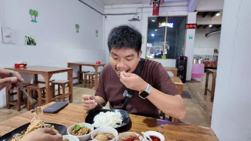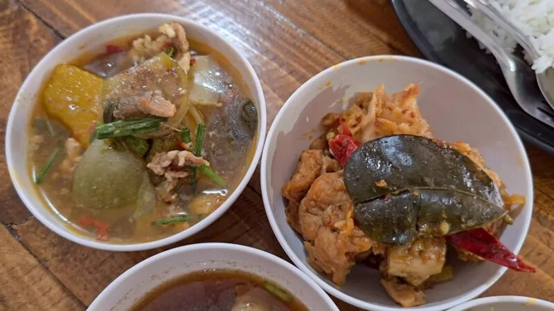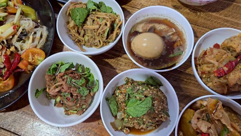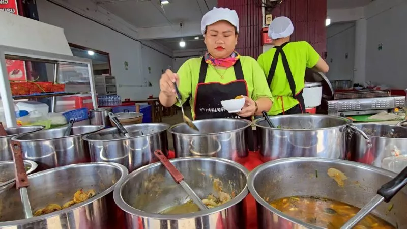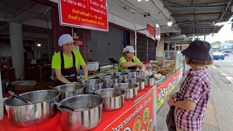 ขณะเดียวกัน น.ส.พรรณนภา พจนา อายุ 26 ปี พนักงานร้าน กล่าวว่า เมนูยอดนิยมของร้านคือ ซุปอีสาน ทั้งซุปหน่อไม้ ซุปมะเขือ และซุปขนุน หรือที่ชาวบ้านเรียก ซุปบักมี่ รวมถึงเมนูข้าวแกงที่มีทั้งถ้วยเล็ก 10 บาท ถ้วยใหญ่ 20 บาท ข้าวสวยเริ่มต้น 5–10 บาท ตามต้องการของลูกค้า นอกจากนี้ยังมีเมนูปิ้งย่างไม้ละ 10 บาท เช่น หมูย่าง หมูปิ้งนมสด หมูโบราณ หมูแดดเดียว เนื้อแดดเดียว หมูยอ ไก่ยอ และตับทอด รวมถึงข้าวห่อที่ขายตามน้ำหนัก เริ่มต้นที่ 25–30 บาทสำหรับหมูและไก่ ส่วนเนื้อวัวเริ่มต้นที่ 40 บาท โดยลูกค้าสามารถเลือกผสมได้ตามใจอีกด้วย