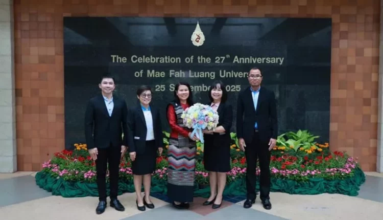 วันที่ 25 กันยายน 2568 เทศบาลนครเชียงรายโดย นายวันชัย จงสุทธานามณี นายกเทศมนตรีนครเชียงรายมอบหมายให้ น.ส.วรรณพัชร จินดาขัด รองนายกเทศมนตรีนครเชียงราย นางอัมพร จันทนะเปลิน ผู้อำนวยการสถานศึกษา พร้อมคณะผู้บริหาร ร่วมเดินทางไปแสดงความยินดี เนื่องในโอกาสที่มหาวิทยาลัยแม่ฟ้าหลวงครบรอบการก่อตั้ง 27 ปี ณ มหาวิทยาลัยแม่ฟ้าหลวงมหาวิทยาลัยแม่ฟ้าหลวง (มฟล.) จัดงานฉลองครบรอบ 27 ปีแห่งการสถาปนา ยืนยันบทบาทสำคัญในการเป็น “พลังแห่งการเปลี่ยนแปลง” ภายใต้แนวคิดหลัก “Driving Force for well-being and sustainable future” ที่ขับเคลื่อนสังคมไทยและภูมิภาคสู่ความเป็นอยู่ที่ดีและอนาคtที่ยั่งยืน ณ หอประชุมสมเด็จย่า