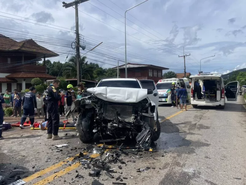 เมื่อวันที่ 1 ตุลาคม 2568 เวลา 13.55 น. สภ.เชียงคำ จ.พะเยา รับแจ้งอุบัติเหตุรถกระบะชนประสานงากันบริเวณถนนบ้านถ้ำกาญจนา หมู่ 8 ต.แม่ลาว อ.เชียงคำ จึงรุดตรวจสอบที่เกิดเหตุ พร้อมเจ้าหน้าที่กู้ภัยมูลนิธิสยามรวมใจพะเยา สำนักงานใหญ่เชียงคำ