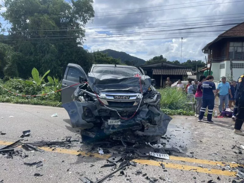 เมื่อวันที่ 1 ตุลาคม 2568 เวลา 13.55 น. สภ.เชียงคำ จ.พะเยา รับแจ้งอุบัติเหตุรถกระบะชนประสานงากันบริเวณถนนบ้านถ้ำกาญจนา หมู่ 8 ต.แม่ลาว อ.เชียงคำ จึงรุดตรวจสอบที่เกิดเหตุ พร้อมเจ้าหน้าที่กู้ภัยมูลนิธิสยามรวมใจพะเยา สำนักงานใหญ่เชียงคำ