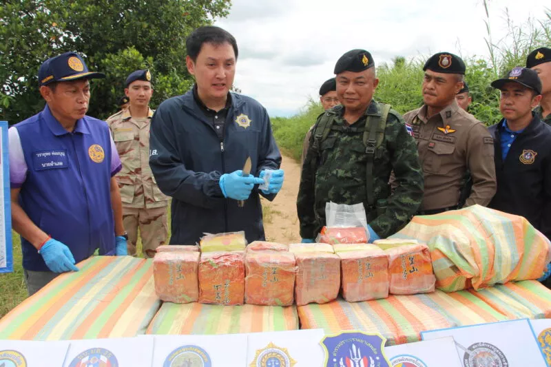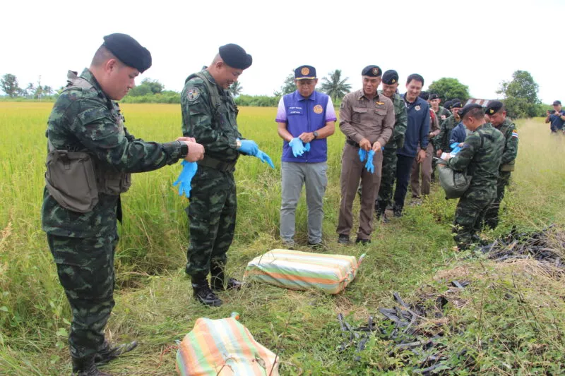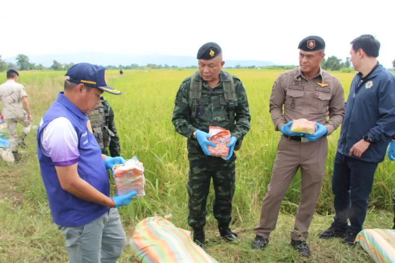 กระทั่งฟ้าสางเจ้าหน้าที่ตรวจสอบพื้นที่โดยรอบ พบกระสอบปุ๋ยต้องสงสัยจำนวน 10 กระสอบตกกระจายอยู่ในบริเวณเกิดเหตุ หน่วยจึงจัดกำลัง 2 ชุดเข้าควบคุมพื้นที่พบว่ากระสอบทั้งหมดบรรจุยาเสพติดให้โทษประเภทที่ 1 (ไอซ์) รวม 10 กระสอบ น้ำหนักรวมประมาณ 245 กิโลกรัม แบ่งเป็น 9 กระสอบ น้ำหนักกระสอบละ 25 กิโลกรัม และอีก 1 กระสอบ น้ำหนัก 20 กิโลกรัมซึ่งทางเจ้าหน้าที่ได้ประสานหน่วยงานด้านความมั่นคงและส่วนที่เกี่ยวข้อง เข้าร่วมตรวจสอบของกลาง พร้อมเร่งขยายผลหาตัวผู้ลักลอบลำเลียง เพื่อดำเนินคดีตามกฎหมายต่อไป