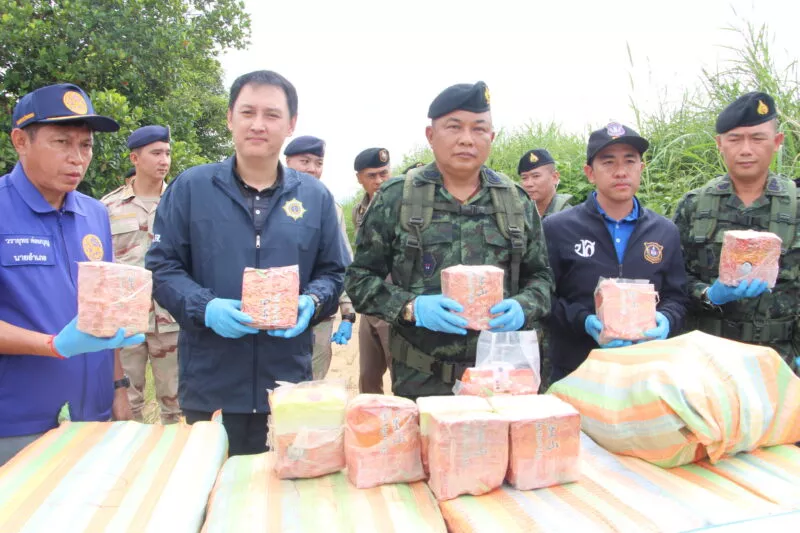 กระทั่งฟ้าสางเจ้าหน้าที่ตรวจสอบพื้นที่โดยรอบ พบกระสอบปุ๋ยต้องสงสัยจำนวน 10 กระสอบตกกระจายอยู่ในบริเวณเกิดเหตุ หน่วยจึงจัดกำลัง 2 ชุดเข้าควบคุมพื้นที่พบว่ากระสอบทั้งหมดบรรจุยาเสพติดให้โทษประเภทที่ 1 (ไอซ์) รวม 10 กระสอบ น้ำหนักรวมประมาณ 245 กิโลกรัม แบ่งเป็น 9 กระสอบ น้ำหนักกระสอบละ 25 กิโลกรัม และอีก 1 กระสอบ น้ำหนัก 20 กิโลกรัมซึ่งทางเจ้าหน้าที่ได้ประสานหน่วยงานด้านความมั่นคงและส่วนที่เกี่ยวข้อง เข้าร่วมตรวจสอบของกลาง พร้อมเร่งขยายผลหาตัวผู้ลักลอบลำเลียง เพื่อดำเนินคดีตามกฎหมายต่อไป