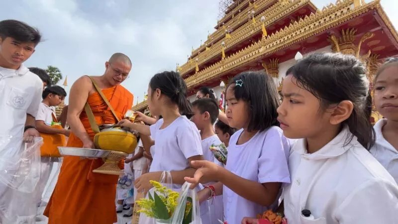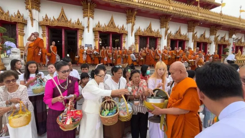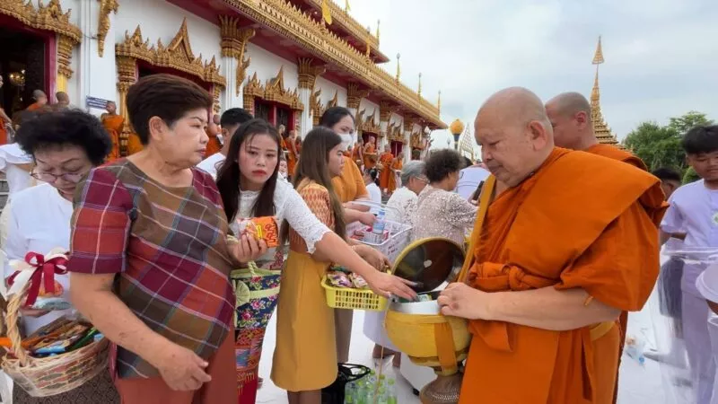 เมื่อเวลา 08.00 น. วันที่ 7 ต.ค. 68 ที่พระมหาธาตุแก่นนครอนุสรณ์สาธุชน วัดหนองแวงพระอารามหลวง ต.ในเมือง อ.เมือง จ.ขอนแก่น พระเทพวิสุทธิคุณ เจ้าอาวาสวัดหนองแวง พระอารามหลวง นำพระเณร กว่า 300 รูป ออกรับบิณฑบาตข้าวสาร อาหารแห้ง จากพุทธศาสนิกชน นักเรียน ครู อาจารย์ ที่พร้อมใจกันนุ่งขาวห่มชาวร่วมตักบาตรเทโวเนื่องในวันออกพรรษาเพื่อเป็นสิริมงคลแก่ตัวเองและครอบครัว กว่า 1,000 คน ขณะที่ในช่วงค่ำวันนี้วัดได้กำหนดจัดกิจกรรมเวียนเทียนรอบพระธาตุ 9 ชั้น และมีกิจกรรมส่งเสริมพุทธศาสนาอื่นๆ อีกมากมาย