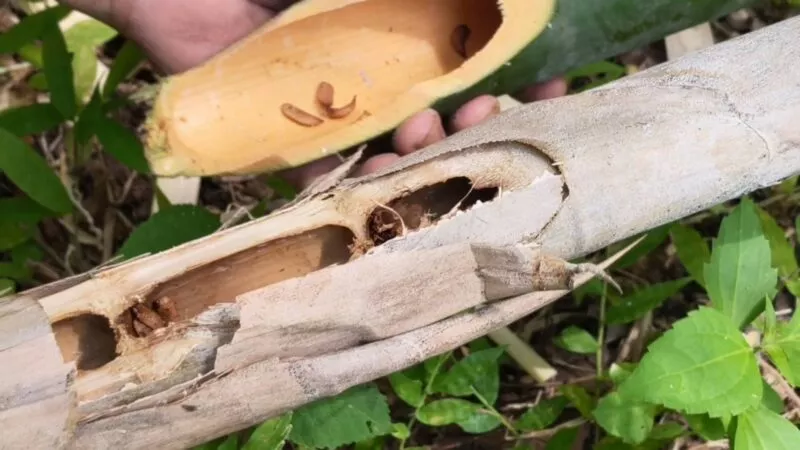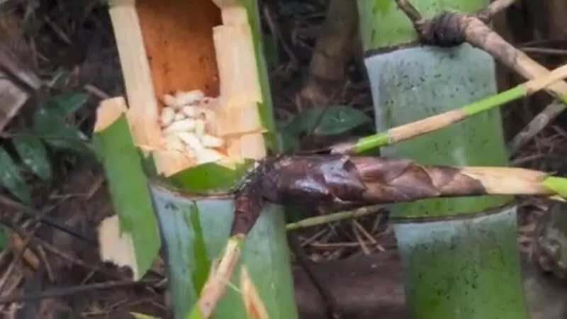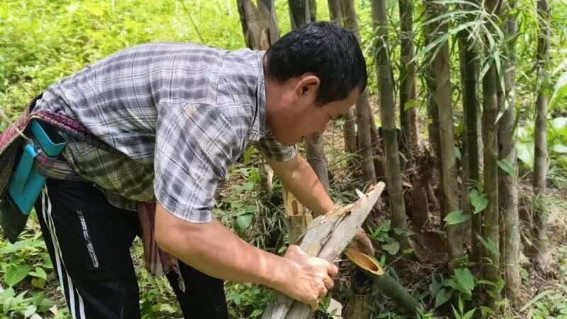 เมื่อพบลำไผ่ที่คาดว่าจะมีนอน ชาวบ้านจะใช้มีดเฉือนหรือขวานผ่าอย่างระมัดระวัง เพื่อไม่ให้หนอนเสียหาย ก่อนเก็บใส่กระบอกไม้ไผ่ โดยหนึ่งวันสามารถเก็บได้ตั้งแต่ ครึ่งกิโลกรัมถึงสองกิโลกรัม แล้วแต่พื้นที่นั้นมีไผ่ชุกชุมเพียงใด