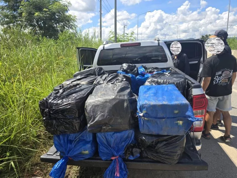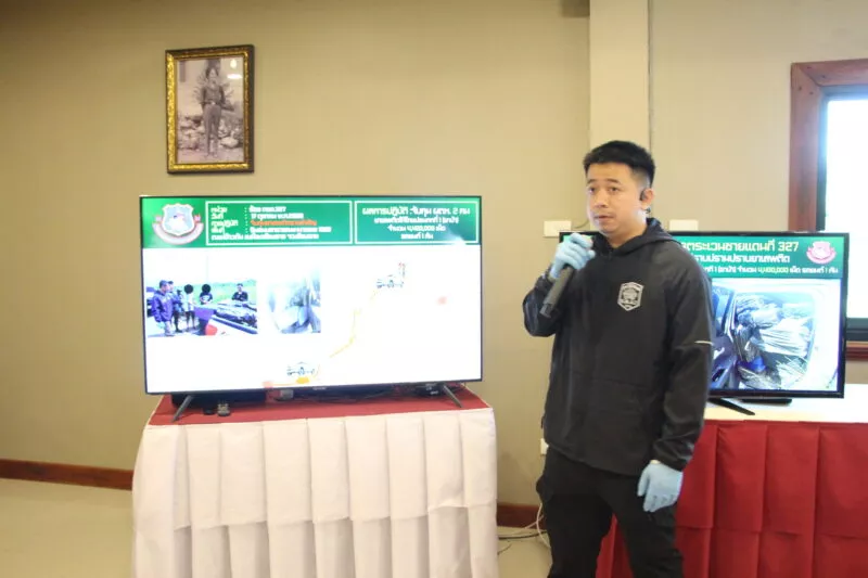 โดยการจับกุมในครั้งนี้ เจ้าหน้าที่ตำรวจ ร้อย ตชด.327 ได้สืบทราบว่าจะมีการลักลอบลำเลียงยาเสพติดผ่านพื้นที่ อ.เชียงแสน จ.เชียงราย มุ่งหน้าไป อ.เมือง จ.เชียงราย จึงได้วางแผนสกัดกั้นทันที ต่อมาเมื่อเวลา ประมาณ 13.00 น.วันที่ 17 ต.ค.68 เจ้าหน้าที่ พบรถยนต์ยี่ห้อ ISUZU สีเทา ตรงตามที่เป้าหมายจึงได้ติดตามและแสดงตนว่าเป็นเจ้าหน้าที่ตำรวจเรียกรถคันดังกล่าวหยุด แต่รถคันดังกล่าวได้เร่ง เครื่องยนต์พยายามหลบหนี เจ้าหน้าที่จึงได้ติดตามสกัดกั้น จนกระทั่งรถคันดังกล่าวได้จอดรถข้างทาง เจ้าหน้าที่ ชุดจับกุมจึงเข้าควบคุมตัวผู้ต้องหาได้ทั้ง 2 คน จากนั้นจึงนำตัวเข้าตรวจค้นภายในพบกระสอบสีฟ้าห่อด้วยถุงพลาสติกดำ และกระสอบสีฟ้า ในห้องโดยสารตอนหลังของรถคันดังกล่าวจำนวน 24 กระสอบ เมื่อเปิดดูภายในกระสอบ พบเป็นยาเสพติดให้โทษประเภท 1 (เมทแอมเฟตามีนหรือยาบ้า) เจ้าหน้าที่ชุดจับกุมจึงได้แจ้งข้อกล่าวหาเบื้องต้นกับทั้ง 2 คน ก่อนจะได้ควบคุมตัวผู้ต้องหาพร้อมของกลาง ส่งพนักงานสอบสวน สภ.บ้านดู่ เพื่อดำเนินการ ในส่วนที่เกี่ยวข้องต่อไป