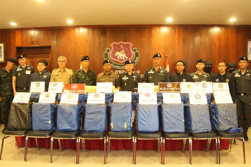 เวลา 10.45 น.วันที่18 ต.ค.68 ที่กองร้อย ตชด.327 อ.แม่จัน จ.เชียงราย พล.ต.ท.รุ่งโรจน์ ฐากูรปุณยสิริ ผู้บัญชาการตำรวจตระเวณชายแดน พล.ต.ต.วรพัฒน์ บุญมา ผู้บังคับการตำรวจตระเวณชายแดนภาค 3 พ.ต.อ.รังสิมันต์ สงเคราะห์ธรรม รอง ผบก.ตชด.ภาค3 พ.ต.อ.รัชพล น้อยช่างคิด รอง ผบก.ภ.จว.เชียงราย พ.อ.สุพรร์ ร้อยพุทธ ผบ.ฉก.ทัพเจ้าตาก กองกำลังผาเมือง พ.ต.อ.ภูมิขาย พันธ์กล้า ผกก.ตชด.32 พ.ต.ท.ยุธยา สังแสวง รอง ผกก.ตชด.32 , พ.ต.ต. อนัญวัฒน์ รัตนวิชัย ผบ.ร้อย ตชด.327 ฝ่ายปกครอง พร้อมด้วยหน่วยงานที่เกี่ยวข้อง ได้ร่วมกับแถลงข่าวการสกัดกั้นจับกุมผู้ลักลอบลำเลียงยาบ้าจำนวน 4,400,000 เม็ด