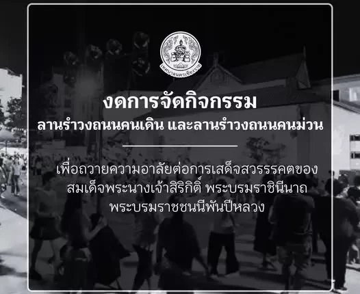 ด้วยมติที่ประชุมครม.เห็นชอบตามประกาศสํานักนายกรัฐมนตรี เรื่อง สมเด็จพระนางเจ้าสิริกิติ์ พระบรมราชินีนาถ พระบรมราชชนนีพันปีหลวง สวรรคต ขอความร่วมมือสถานบันเทิงและสถานบริการต่างๆ งดหรือลดกิจกรรม เพื่อความบันเทิง ตามความเหมาะสม เป็นระยะเวลา 30 วัน