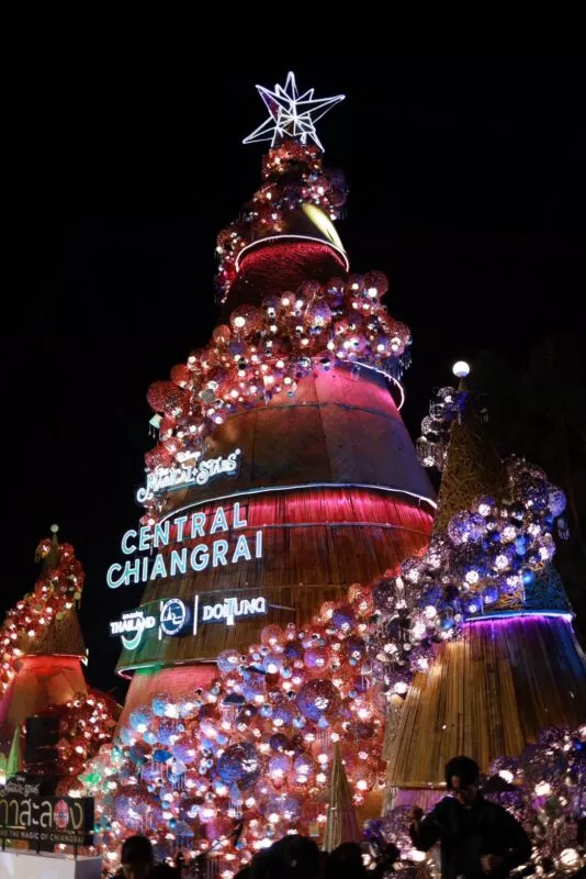 ภายในพื้นที่จัดงานยังมีการตกแต่งต้นคริสต์มาสรวม 7 ต้น โดยแต่ละต้นสื่อความหมายผ่านลวดลายไม้ไผ่ เช่น ลายไม้ฟาก ที่สื่อถึงความมั่นคงของครอบครัว, ลายสานไตใหญ่ ที่สะท้อนความสามัคคีของชุมชน และงานสานพื้นถิ่นจากชนเผ่าลาหู่และอาข่า บ่งบอกความเรียบง่ายและการใช้ทรัพยากรอย่างคุ้มค่า
