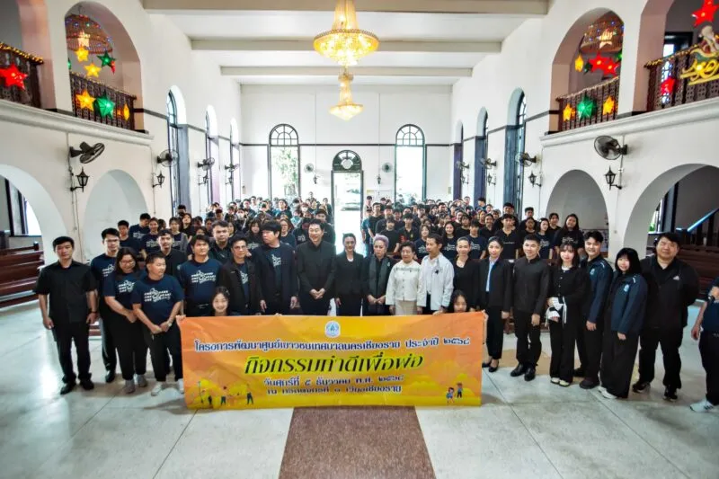 ศูนย์เยาวชนเทศบาลนครเชียงราย โดย นายวันชัย จงสุทธานามณี นายกเทศมนตรีนครเชียงราย น.ส.วรรณพัชร จินดาขัด รองนายกเทศมนตรีนครเชียงราย นางอำไพ จันทร์เงิน ผอ. สำนักการศึกษา ข้าราชการ และเจ้าหน้าที่ จัดกิจกรรม “ทำดีเพื่อพ่อ” ภายใต้โครงการพัฒนาศูนย์เยาวชนเทศบาลนครเชียงราย ในวันศุกร์ที่ 5 ธันวาคม พ.ศ. 2568 ณ คริสตจักรที่ 1 เวียงเชียงราย ซึ่งเป็นหนึ่งในกิจกรรมสำคัญที่จัดขึ้นเพื่อพัฒนาเด็กและเยาวชนในสังกัดเทศบาล