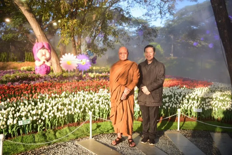 โอกาสอันเป็นมงคลนี้ ได้รับเมตตาจาก พระอาจารย์สมชาติ อภิชาโต คณะพระภิกษุสงฆ์ วัดป่าวังศิลา อำเภอป่าแดด จังหวัดเชียงราย เมตตาเยี่ยมชมงานเชียงรายดอกไม้งาม ครั้งที่ 22 นับเป็นช่วงเวลาแห่งความปลาบปลื้มและน่าประทับใจยิ่ง เพราะนอกจากการได้ชื่นชมความงามของดอกไม้นานาพันธุ์และศิลปะการจัดสวนที่ประณีตงดงามแล้ว ยังเป็นการเติมเต็มพลังใจ ด้วยคำสอนและพรอันเปี่ยมด้วยเมตตา ช่วยหล่อเลี้ยงจิตใจให้สงบ อ่อนโยน และเปี่ยมด้วยความสุข