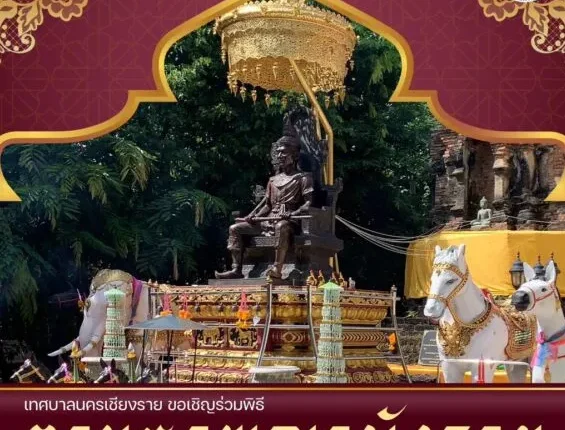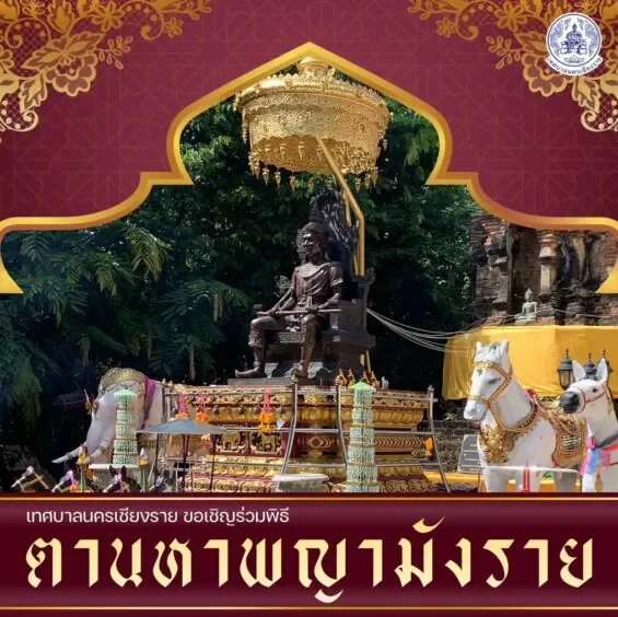 เทศบาลนครเชียงรายโดย นายวันชัย จงสุทธานามณี นายกเทศมนตรีนครเชียงราย ได้สำนึกในพระมหากรุณาธิคุณ จึงได้จัดพิธีบำเพ็ญกุศลสักการะดวงพระวิญญาณพ่อขุนเม็งรายมหาราชขึ้น ในวันที่ ๒๕ มกราคม เวลา ๑๖.๐๐ น. ณ วัดดอยงำเมือง #ขอเชิญชวนพี่น้องชาวเชียงรายและนักท่องเที่ยวร่วมประกอบพิธี