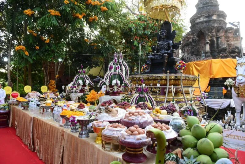 ทั้งนี้ ได้รับความเมตตาจาก พระรัตนมุนี ที่ปรึกษาคณะจังหวัดเชียงราย พร้อมคณะสงฆ์ จังหวัดเชียงรายเป็นประธานฝ่ายสงฆ์ พิธีบำเพ็ญกุศลทักษิณานุปทานอุทิศถวายพญามังรายมหาราช เคารพต่อดวงพระวิญญาณของพระองค์ท่าน เพื่อความร่มเย็นของเมืองเชียงรายและความเป็นสิริมงคลแก่ชีวิตอีกด้วย