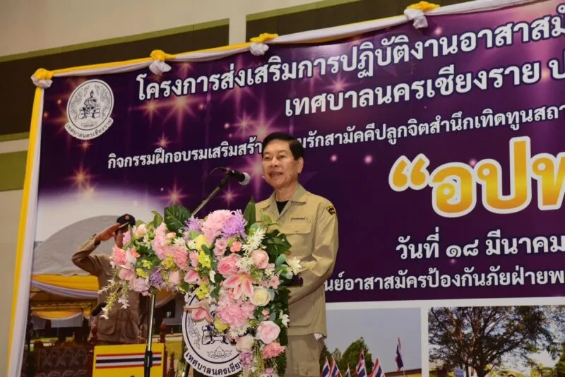 วันที่ 18 มีนาคม 2569 เทศบาลนครเชียงรายโดย นายวันชัย จงสุทธานามณี นายกเทศมนตรีนครเชียงราย ในฐานะผู้อำนวยการศูนย์ อปพร. เทศบาลนครเชียงราย เป็นประธานเปิด “โครงการส่งเสริมการปฏิบัติงานอาสาสมัครป้องกันภัยฝ่ายพลเรือน (อปพร.) ประจำปี 2569” พร้อมการอบรม การป้องกันและแก้ไขปัญหายาเสพติด วิทยากร : นายจักรกริช หลวงสา เจ้าพนักงานปกครองชำนาญการ ศูนย์อำนวยการป้องกันและปราบปรามยาเสพติดจังหวัดเชียงราย และฝึกอบรมเสริมสร้างความรัก ความสามัคคี ปลูกจิตสำนึกเทิดทูนสถาบัน วิทยากร : จ.ส.อ. สุชล เนาชุมพู ครูฝึกหน่วยฝึกนักศึกษาวิชาทหาร มณฑลทหารบกที่ 37 และยกย่องเชิดชูเกียรติ อปพร. เนื่องในวัน อปพร. 22 มีนาคมของทุกปี