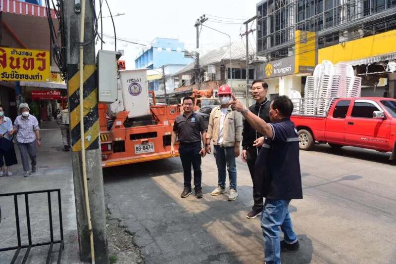 วันอาทิตย์ที่ 29 มีนาคม 2569 นายวันชัย จงสุทธานามณี นายเทศมนตรีนครเชียงราย นายธเนศ โกมลธง รองนายกเทศมนตรีนครเชียงราย นายประพันธ์ ช่างแก้ว เลขานุการเทศบาลนครเชียงราย ลงพื้นที่ถนนธนาลัย (ตั้งแต่สี่แยกสุริวงศ์ ถึงแยก ธนาคารออมสิน) ติดตาม “โครงการรื้อถอนสายไฟฟ้าตัดเสาไฟฟ้าและสายสื่อสารในเขตเมืองชั้นใน พร้อมพัฒนาระบบเคเบิลไฟฟ้าใต้ดิน” ในการปรับปรุงภูมิทัศน์เมืองให้สวยงาม เป็นระเบียบ และเพิ่มความปลอดภัยให้กับประชาชน