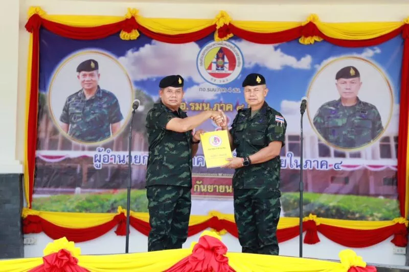 วันนี้ 30 กันยายน 2568 ที่ ศาลาพิณประเสริฐ กองอำนวยการรักษาความมั่นคงภายในภาค 4 ส่วนหน้า ค่ายสิรินธร อำเภอยะรัง จังหวัดปัตตานี มีพิธีรับ–ส่งหน้าที่ผู้อำนวยการรักษาความมั่นคงภายในภาค 4 อย่างสมเกียรติ ระหว่าง พลโท ไพศาล หนูสังข์ แม่ทัพภาคที่ 4/ผอ.รมน.ภาค 4 (คนเดิม) ซึ่งได้รับโปรดเกล้าฯ ให้ดำรงตำแหน่งที่ปรึกษาพิเศษกองทัพบก ส่งมอบหน้าที่ให้แก่ พลตรี นรธิป โพยนอก แม่ทัพภาคที่ 4/ผอ.รมน.ภาค 4 (คนใหม่)