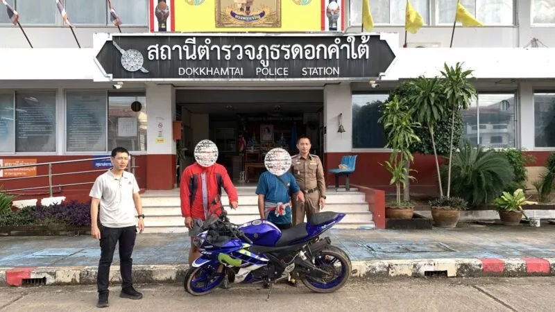 ต่อมา เจ้าหน้าที่ตำรวจ สภ.ดอกคำใต้ ร่วมกับกองกำกับการสืบสวนตำรวจภูธรจังหวัดพะเยา ลงพื้นที่สืบสวนจนสามารถระบุตัวผู้ก่อเหตุได้คือ นายเอ (นามสมมติ) ผู้ขับขี่ และนายบี (นามสมมติ) ผู้ซ้อนท้าย ล่าสุด วันที่ 1 ตุลาคม 2568 เวลาประมาณ 14.00 น. ทั้งสองได้เดินทางเข้าพบพนักงานสอบสวน สภ.ดอกคำใต้ โดยรับสารภาพว่าเป็นบุคคลตามภาพจากกล้องวงจรปิด และยอมรับว่าได้ก่อเหตุจริง ทำไปเพราะคึกคะนอง