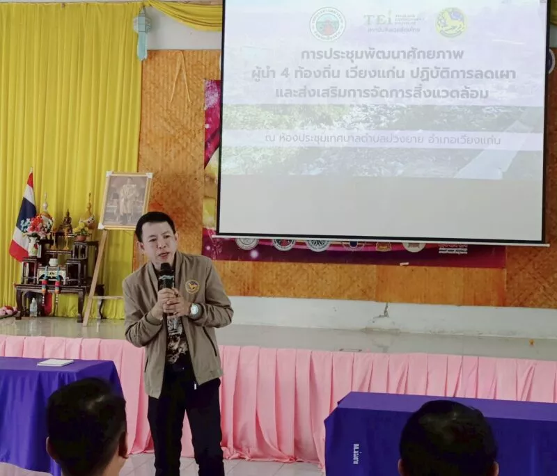 21-22 ตุลาคม 2568 สถาบันสิ่งแวดล้อมไทย (TEI) คุณวิลาวรรณ น้อยภา หัวหน้าโครงการพัฒนาความร่วมมือเมืองคู่ขนาน ไทย–ลาว–เมียนมา เพื่อขับเคลื่อนการจัดการและลดมลพิษหมอกควันข้ามแดน ดร.ไพบูลย์ โพธิ์สุวรรณ ผู้เชี่ยวชาญด้านการจัดการสิ่งแวดล้อม พร้อมด้วยคณะวิจัย จัดกระบวนการ “พัฒนาศักยภาพผู้นำ 4 ท้องถิ่น เวียงแก่น ปฏิบัติการลดเผา และส่งเสริมการจัดการสิ่งแวดล้อม” ร่วมกับพัฒนาการอำเภอ อำเภอเวียงแก่น ให้กับผู้นำท้องถิ่น ท้องที่ แกนนำชุมชน อสม.ใน 4 ท้องถิ่นของอำเภอเวียงแก่น จังหวัดเชียงราย ได้แก่ เทศบาลตำบลหล่ายงาว เทศบาลตำบลตำบลท่าข้าม เทศบาลตำบลม่วงยาย และตำบลปอ ️