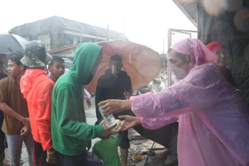 ปฏิบัติการครั้งนี้ได้เนรมิตพื้นที่ของ ศูนย์พัฒนาอาชีพ กลุ่มร่วมด้วยช่วยกันชายแดนใต้ ให้กลายเป็น “ฐานบัญชาการครัวสนาม” บรรยากาศภายในเต็มไปด้วยความขะมักเขม้นและไออุ่นจากเตาไฟ ท่ามกลางสายฝนที่โปรยปราย เจ้าหน้าที่และอาสาสมัครต่างระดมกำลังช่วยกันปรุงอาหารสดใหม่ เพื่อให้มั่นใจว่าพี่น้องผู้ประสบภัยจะได้รับประทานอาหารที่ร้อน ปรุงสุก และถูกสุขลักษณะ