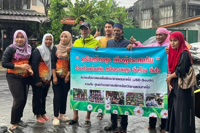 ล่าสุด ศูนย์อำนวยการบริหารจังหวัดชายแดนภาคใต้ (ศอ.บต.) ไม่ได้เดินหน้าภารกิจกู้ขวัญนี้เพียงลำพัง แต่ได้ผนึกกำลังครั้งสำคัญร่วมกับ สมาคมสื่อมวลชนเพื่อพัฒนาชายแดนภาคใต้ (JSD-South) และเครือข่ายภาคประชาสังคมที่เข้มแข็งอย่าง ศูนย์พัฒนาอาชีพ กลุ่มร่วมด้วยช่วยกันชายแดนใต้ รวมถึง กลุ่มการจัดการจุดเสี่ยงเพื่อป้องกันอุบัติเหตุทางถนน เปิดปฏิบัติการเชิงรุกภายใต้โครงการ “ครัวสร้างสุข เพื่อผู้ประสบภัย”