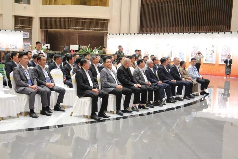 เป็นประธานในพิธี พร้อมด้วย พลจัตวา แป้นคำ บุดจันแพง กรรมการศูนย์กลางพรรค ,เลขาธิการพรรคแขวงบ่อแก้ว,เจ้าแขวงแขวงบ่อแก้ว ท่าน กาว หลง รองประธานสภาบริหารเขตเศรษฐกิจพิเศษสามเหลี่ยมทองคำ พร้อมด้วย ผู้นำจากส่วนกลาง ผู้นำระดับแขวง ผู้บริหารเขตเศรษฐกิจพิเศษสามเหลี่ยมทองคำ ผู้แทนฝ่ายลาว ฝ่ายจีน แขกผู้มีเกียรติ และสื่อมวลชนเข้าร่วมอย่างพร้อมเพรียง