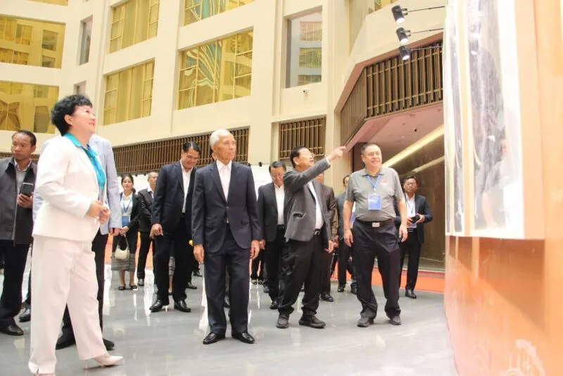 นิทรรศการจัดขึ้น ณ ห้อง MF โรงแรมดาวดอกงิ้ว ภายในเขตเศรษฐกิจพิเศษสามเหลี่ยมทองคำ เมืองต้นผึ้ง แขวงบ่อแก้ว สปป.ลาว โดยมี ท่านคำพัน เผียยะวง กรรมการกรมการเมืองศูนย์กลางพรรค